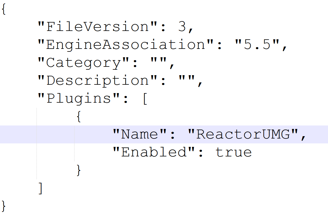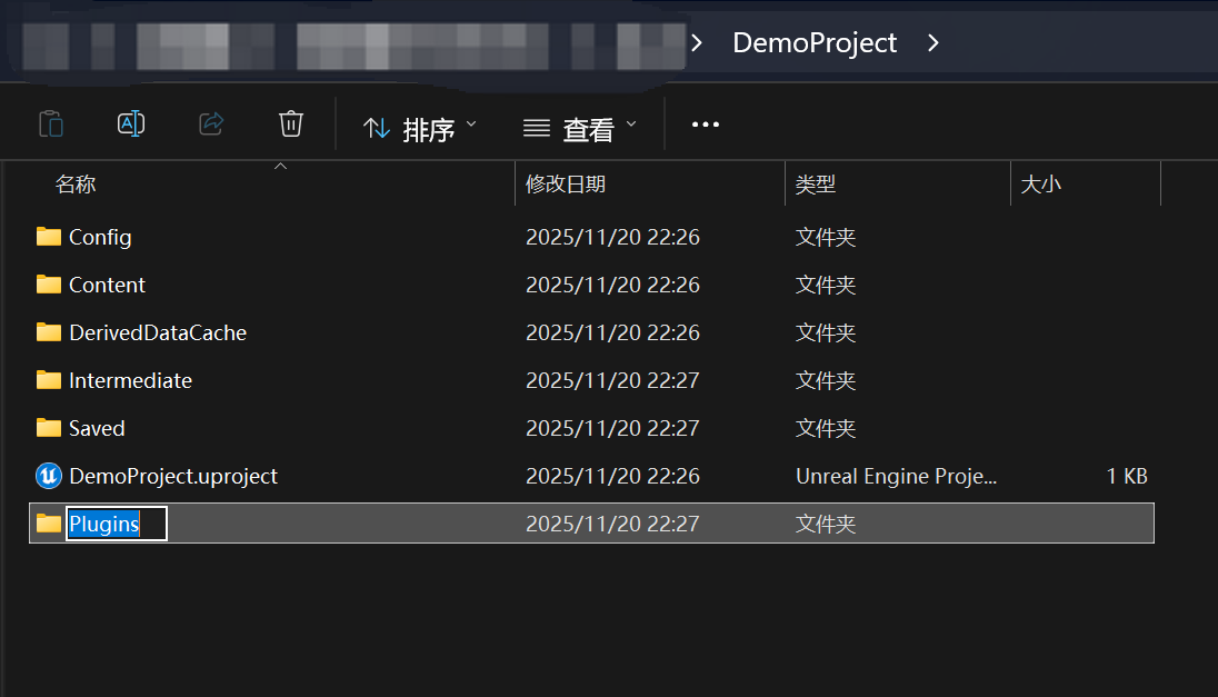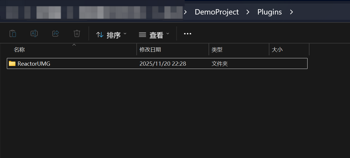 将zip文件解压后得到的ReactorUMG目录放置到项目的Plugins目录,参考以下示例: