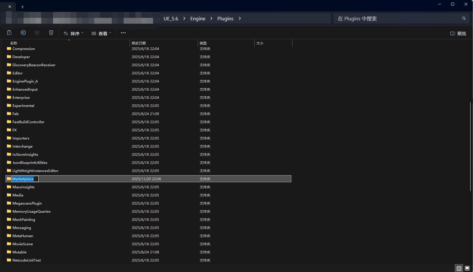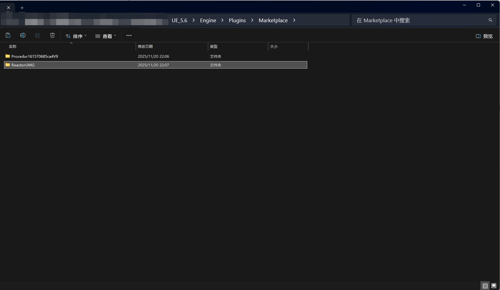 将zip文件解压后得到的ReactorUMG目录拷贝到Engine/Plugins/Marketplace/下(如果在Engine/Plugins没有Marketplace目录,那么直接新建一个文件夹即可)