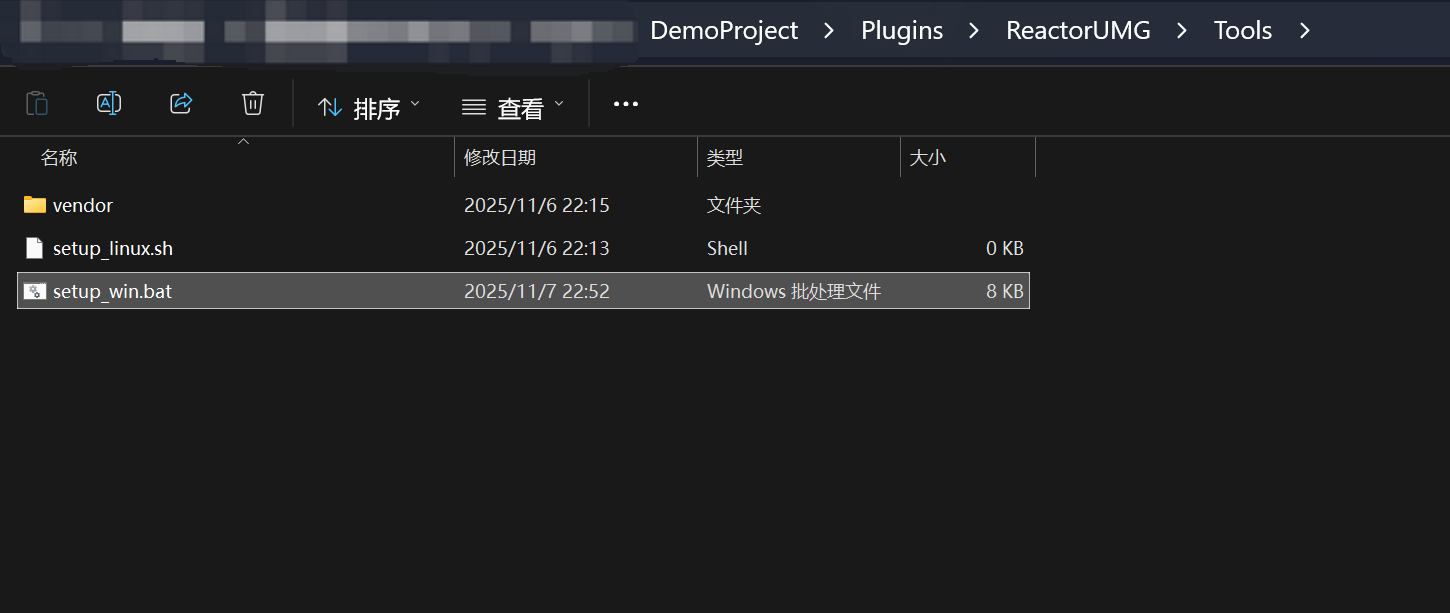 进入插件目录,找到Plugins/ReactorUMG/Tools/setup_win.bat环境初始化脚本。